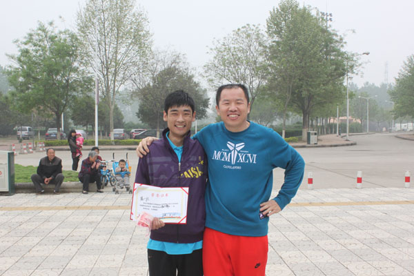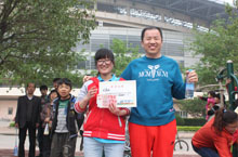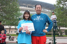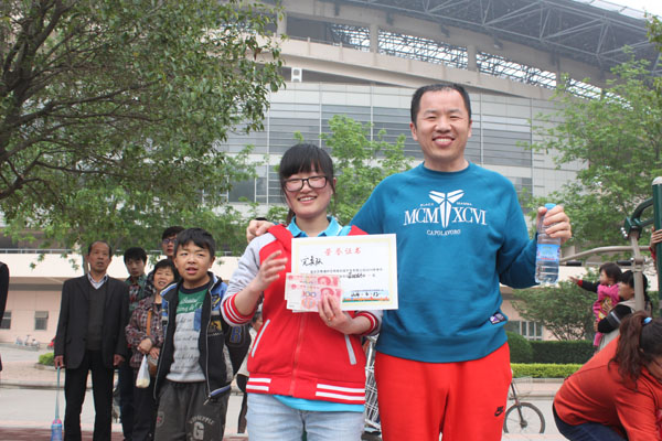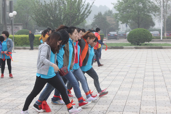 贾总为“两人三足”获胜的团队颁奖