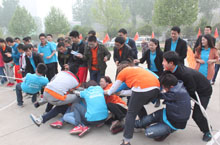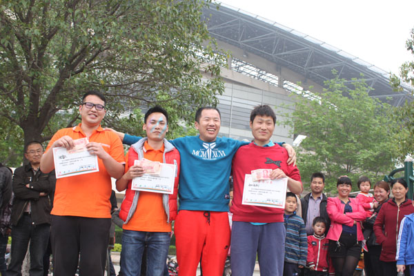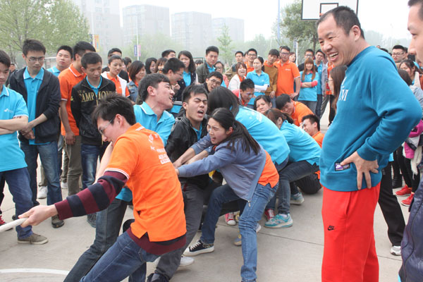 贾总为“拔河”游戏获胜的团队颁奖