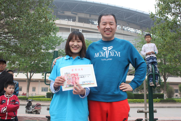 贾总为“跳大绳”获胜的团队颁奖