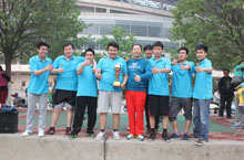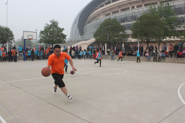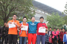 贾总为“篮球接力”获胜的团队颁奖
